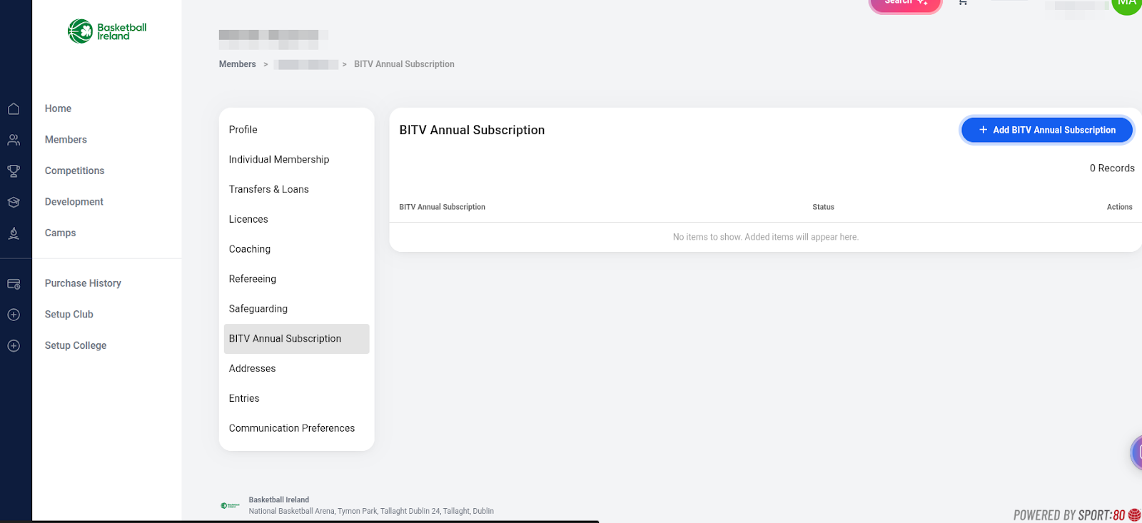 Click on Members in the sidebar and then select your member. A second sidebar will appear and here you will find BITV Annual Subscription